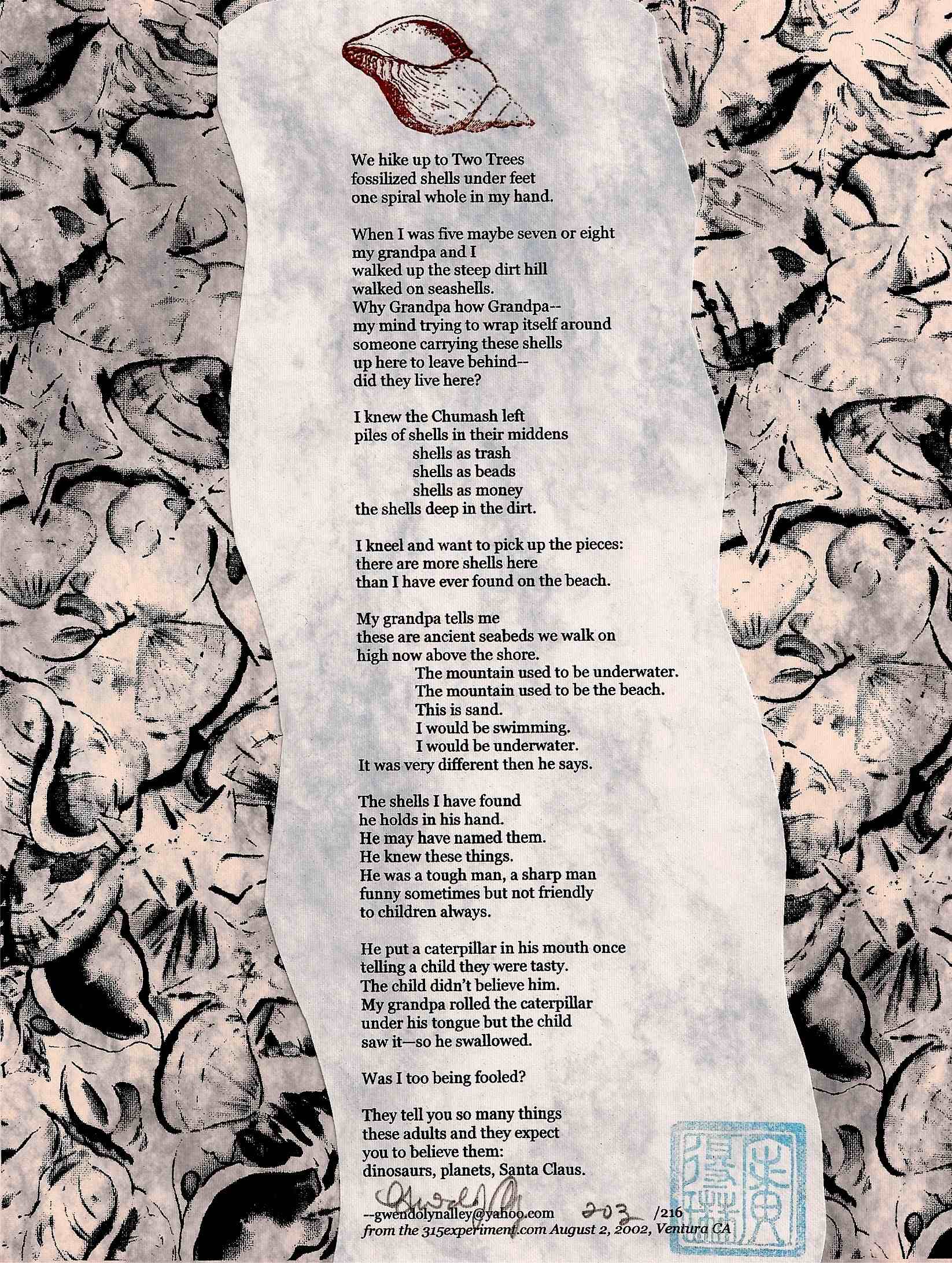From the 315 Experiment: August 2, 2002; the broadside is available for purchase. Let me know if you’re interested!