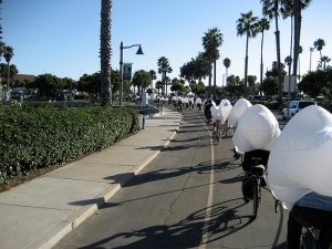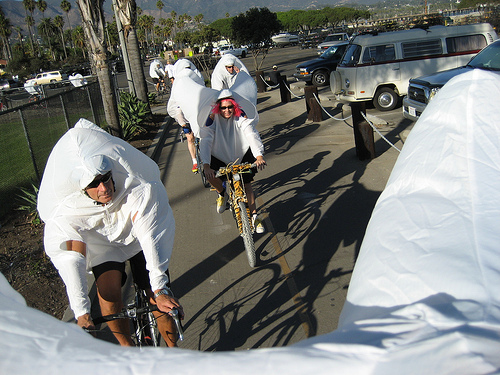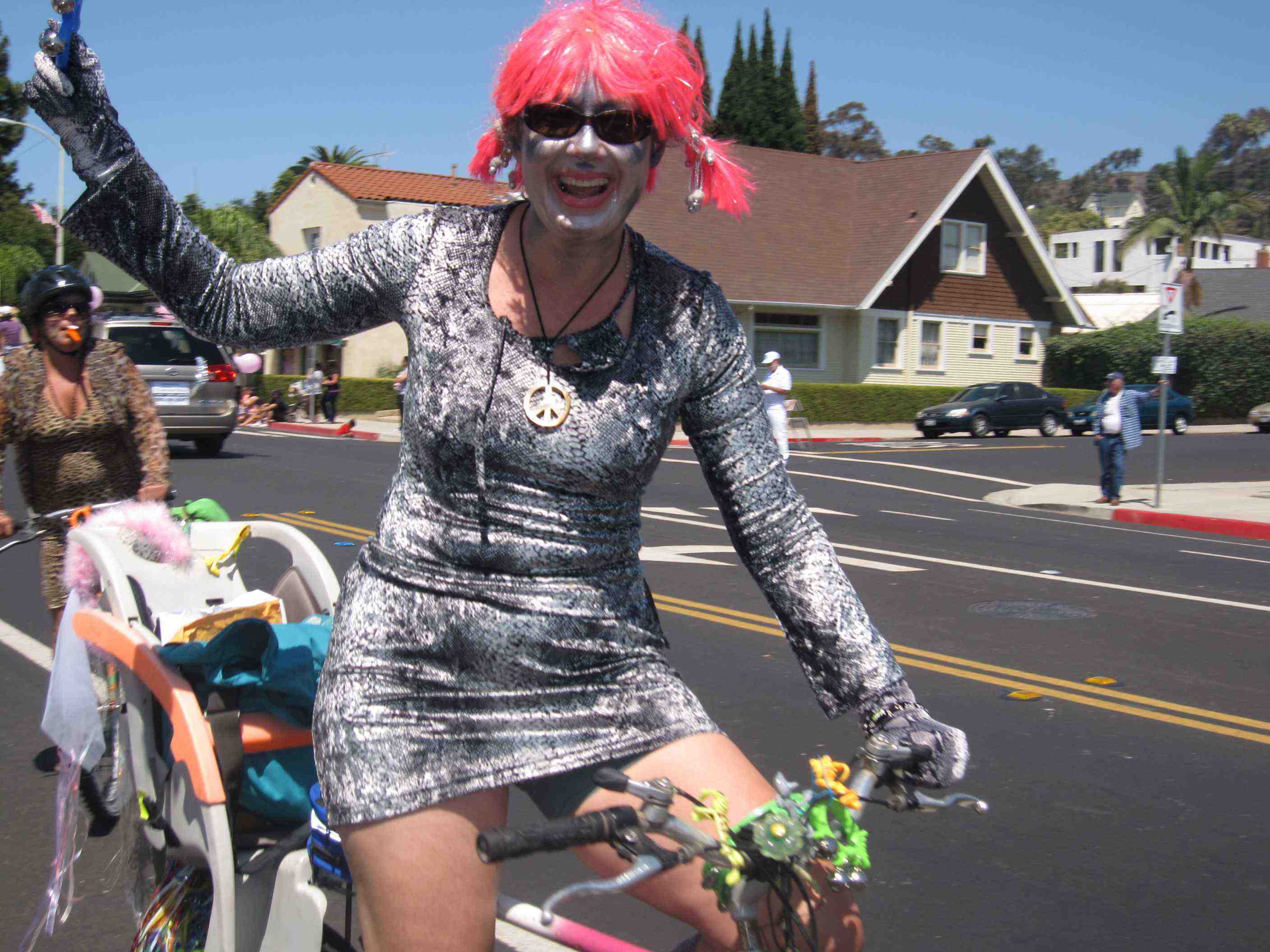 s of the Santa Barbara ride–yep, that’s me, AP in the hot pink hair riding the Tiger bike!) For the one at night, we plan to rig the costumes (and bikes) with lights. In order to figure this out in advance of the ride and Jessica’s arrival, we will also construct additional costumes using Jessica’s patterns. She has a grant to make children’s costumes and so we will make children’s sized ones as well as adult sized ones.