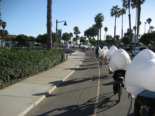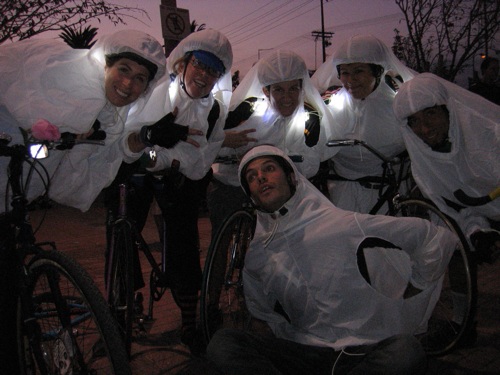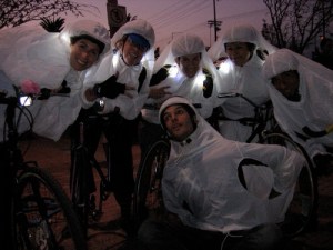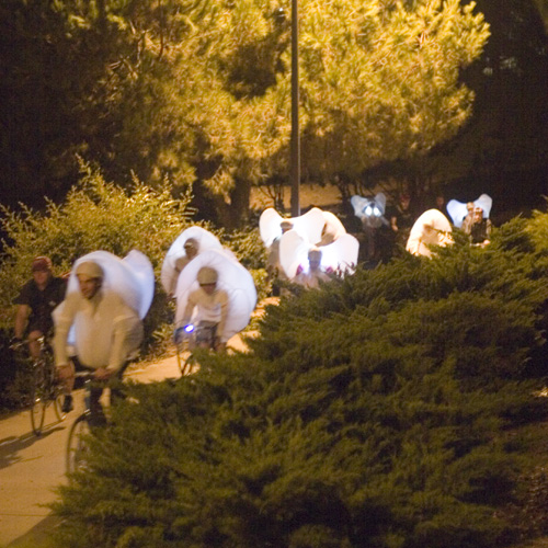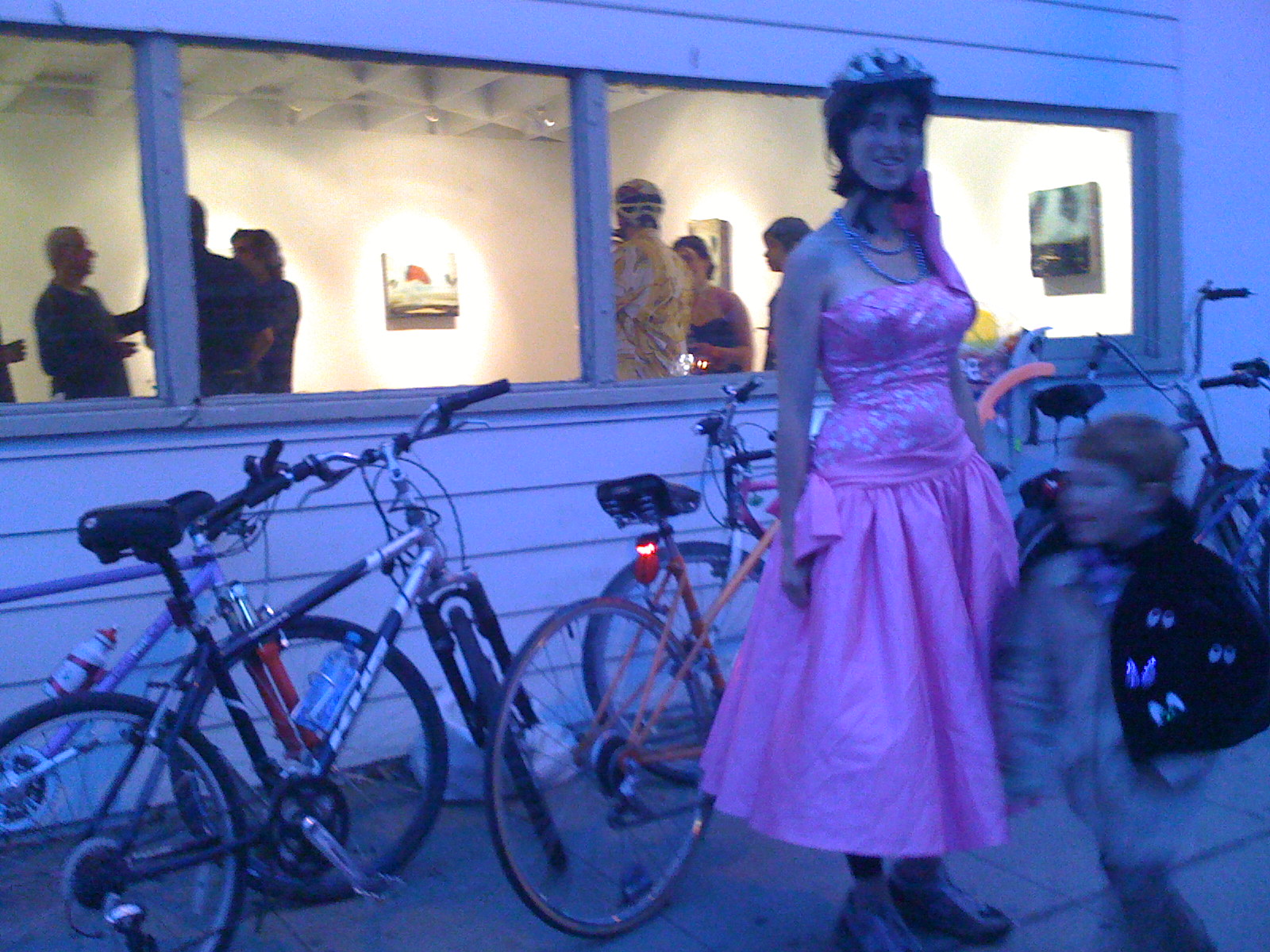 Each ride has a different artistic theme for ArtRiders to participate in with costumes and bike décor. Some of us make music as we ride; we wave and smile and interact with those we pass. We lead a monthly weekend daytime as well which follows the same theme. Here’s a list of 2009’s ArtRide themes. If you have suggestions for 2010, bring ’em on! Especially if you’re into helping out with making flyers etc!