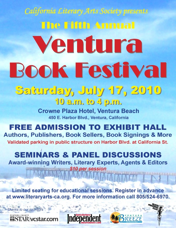 The Ventura Book Festival 2010 Edition takes place TOMORROW Saturday July 17, 2010 from 10 a.m. to 4 p.m. at the Crowne Plaza Hotel, located on the Ventura Beach.
