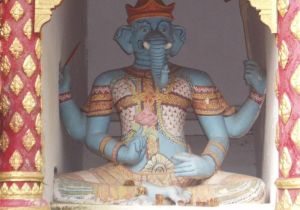 Thai Buddhists call Ganesh “Phra Phikanet” and see him as a remover of obstacles who brings good fortune. At Tipps Thai Restaurant where I went for soup the other day, they told me he brings prosperity. Because he is the god of the arts, you can find him incorporated in the emblem of the Thai Fine Arts Department as pictured.