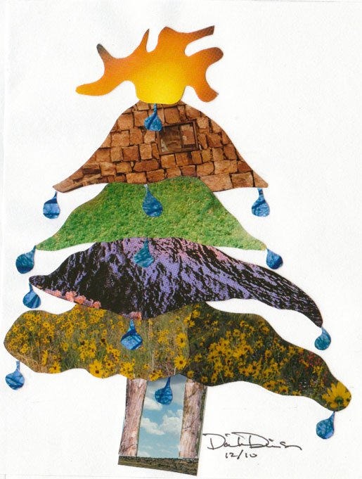 I love receiving mail; e-cards just aren’t the same as receiving something in an envelope delivered to my door! While cards can be reused, you can also make something new and wonderful out of something “old” like Danika Dinsmore who took old photographs and collaged them to make this wonderful festive ” tree.” See another one of her creations and learn more about Danika’s card making process in this blog post.