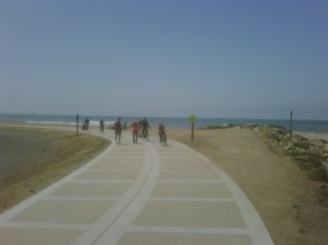 Since I am in Boise Idaho, I couldn’t be at the ribbon cutting ceremony yesterday for the new bike path along the beach in Ventura, so my husband rode his bike over there and sent me some photos from his BlackBerry for this post. Looks like it was a nice sunny day at the beach for a change and I heard a great crowd of people showed up to hear the Mayor and others talk about the project and applaud its completion.