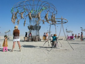This year we missed out on buying the less-expensive lower tier tickets and then all the low-income tickets were sold before we got our application in. So we didn’t think we’d be going–even though it was our “10 year anniversary”: 2001 was the first year my husband went to Burning Man and the experience transformed him and our friendship. (By Burning Man 2002 we were a couple and by 2003 we were married and I was pregnant. In 2005, 2007, and 2009 we returned with our son–he’s the red head in the picture; I’m wearing the cowboy hat. The image is from 2007.)