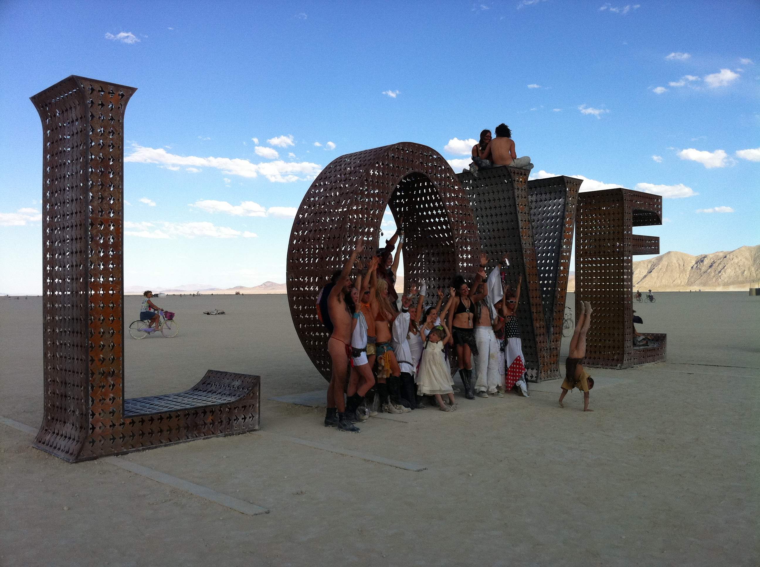 On one side of the Temple was a large sculpture of the letters L O V E. On the other side of the sculpture, barely in sight, was Peter Hudson’s magnificent zoetrope Charon which we visited again for some daytime photos after I placed my books in the Temple.