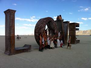 My experience of the Burn of the Temple itself left much to be desired: we were on a packed art car with a bunch of families from Kidsville. My son and husband and a few others went to the playa to watch. My son was insistent that I join them so I did. Unfortunately a young girl needed a lot of attention and with her chatter and antics kept trying to get it from us and her parents. This distraction prevented me from letting myself be in the moment of the Burn as I have been able to do in the past. Of course, letting her distract and annoy me seemed much easier than sobbing.