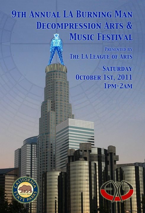 Tomorrow Oct 1 from 1-2am is the Los Angeles 9th Annual Decompression Party Saturday where you can dress up in your playa best and experience the art, music and culture of Burning Man: twelve hours of art, performance, live music, DJs, dancing, theme camps, art cars, green technology, puppetry, circus, fire, and 2011 imagery all with a view of downtown LA’s skyline (and a front row seat to Occupy LA!) at the LA State Historical Park 1245 N. Spring St, Los Angeles, CA 90012.