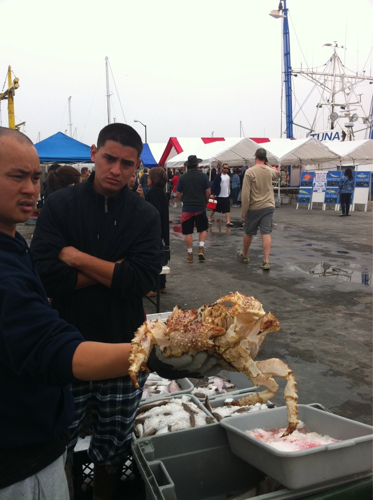 Many Saturday mornings, first thing we go the fish market at the Ventura Harbor to purchase another seasonal favorite, prawns caught in the Santa Barbara channel or possibly a box crab, lobster or whelk. Pictured is a box crab–they fold up on themselves jus