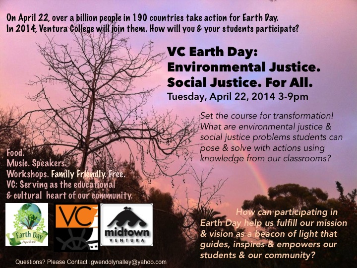 This fits in well with a concept of a Ventura College Earth Day where our students can share their research in Environmental Justice and Social Justice.