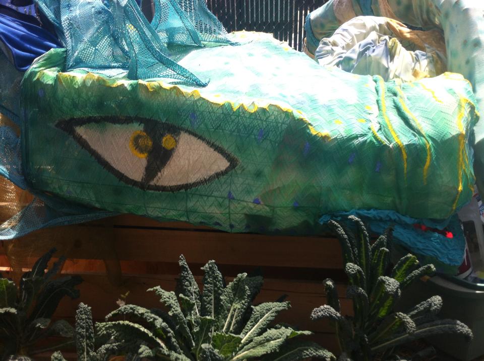 A major community at Lucidity is the Family Garden where I’ve had the pleasure of volunteering in preparation of this year’s festival. The Family Garden offers a DJ booth for kids, workshops, arts, stages, and more. Here’s a few pictures from yesterday’s fun fabrication activities. Images include the head and claws of a dragon that will be “living” in a tree at the Live Oak festival grounds –with its tail wrapped around the tree trunk!