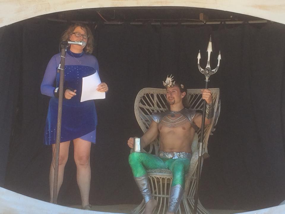 One performance that I did was of the complete 5+ minute poem that I wrote about water and power in Pasadena as a commission (pictured is part of it). In it, I talk about the Greek God Poseidon–who was actually at Lucidity with his Queen and a court of mermaids!