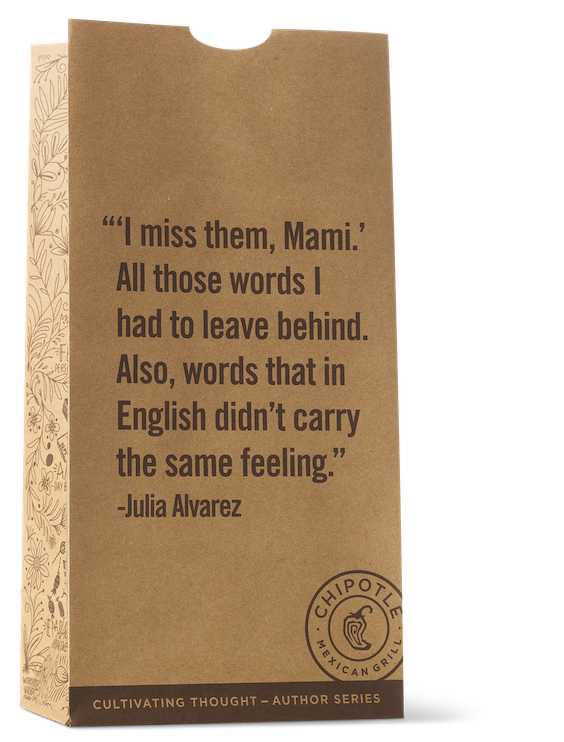 When asked why she participated, Alvarez said, “I also thought it was important as a Latina to add my voice to this series, so it’s not just our food being served at Chipotle, but also our arts—which we all vitally need to nourish the spirit and open wide the heart.”