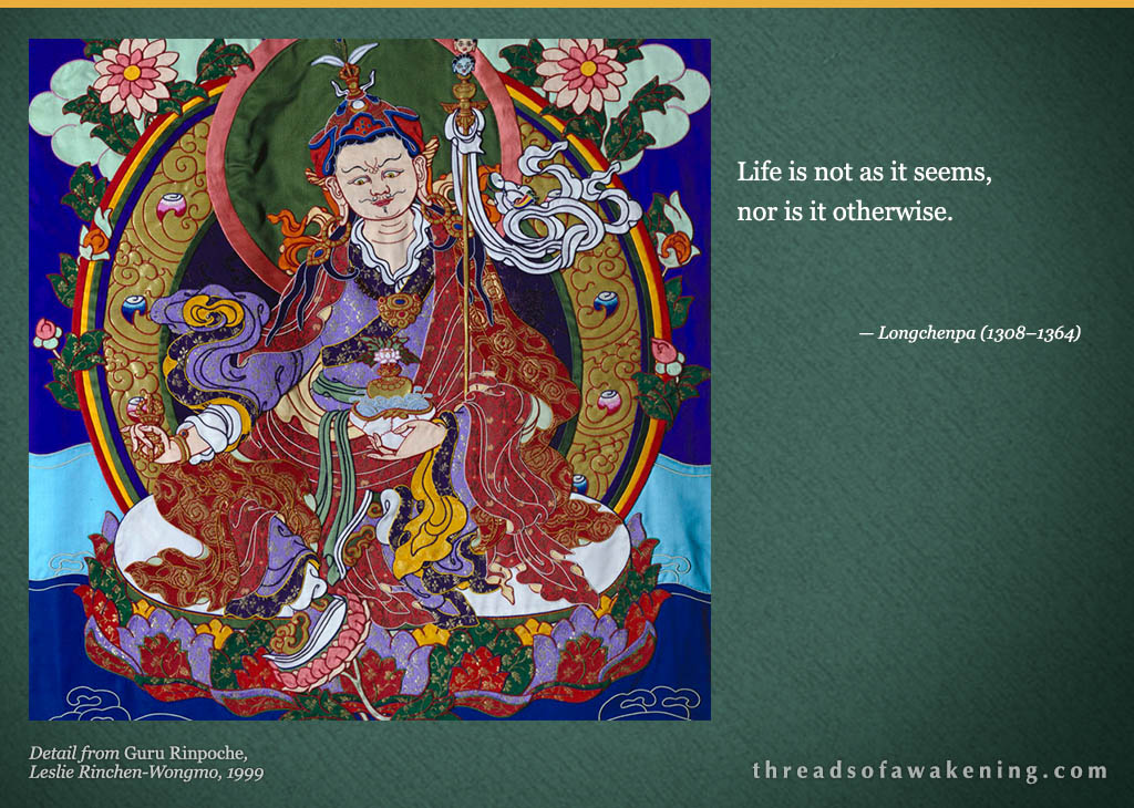 According to Longchenpa, “Life Is Not As It Seems Nor Is It Otherwise.” Longchenpa (1308-1364) was an important spiritual leader, philosopher, teacher, and writer of Tibetan Buddhism. Many of his works are currently in print in English translations.
