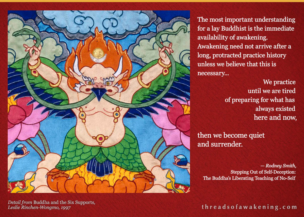 The most important understanding for a lay Buddhist is the immediate availability of awakening.