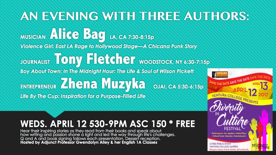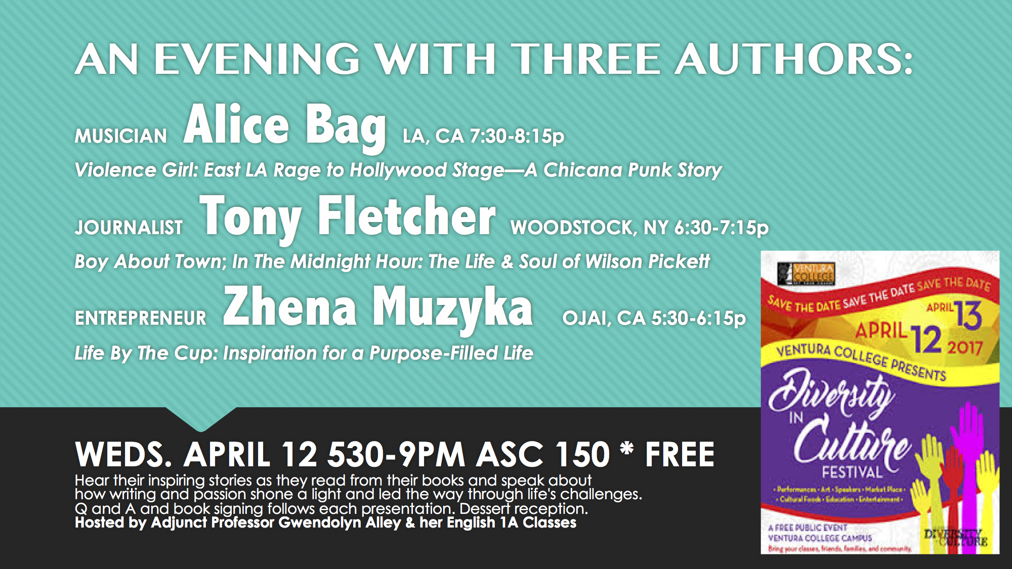 Alice Bag, Tony Fletcher, Zhena Muzyka: Authors Visit Ventura College 4/12 5:30-9p