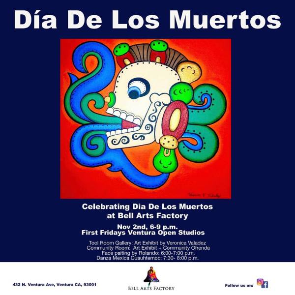 Friday Nov 2 from 6-9pm during First Fridays, Bell Arts Factory (432 N. Ventura Ave, Ventura) will be celebrating Day of the Dead with art, face paining, altars, and more. Other activities are planned over the weekend.