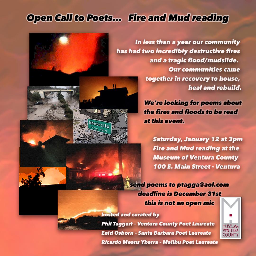 Tonight AP, Students read at Ventura Library; Call for Local Poets re Fire and Mud