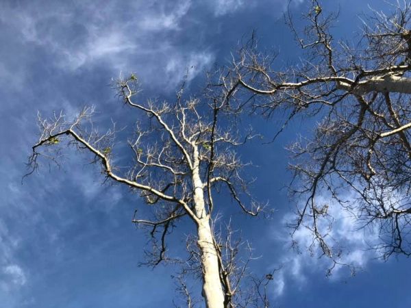 Two sycamores at Arroyo Verde Park in Ventura; the area was hit hard by the Thomas Fire but these trees are recovering.