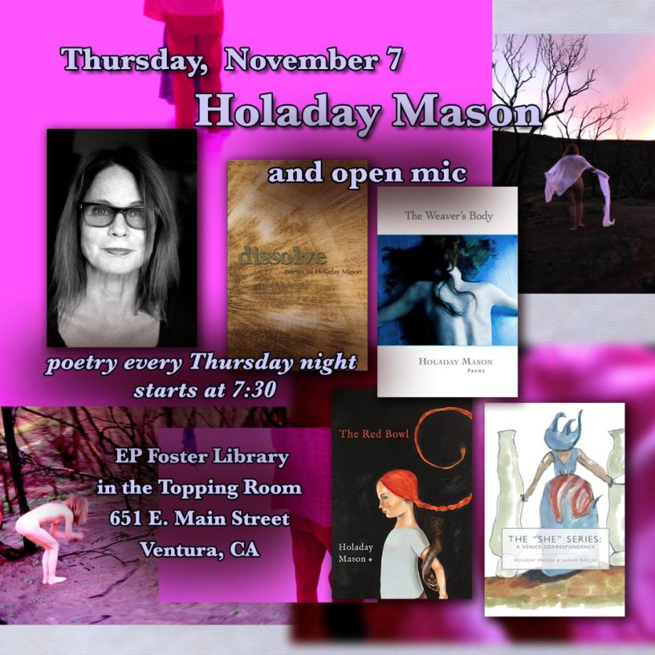 Holiday Mason 11/7, Ventura County’s First Youth Poet Laureate 11/8, Psalms of Cinder and Silt Release 11/9