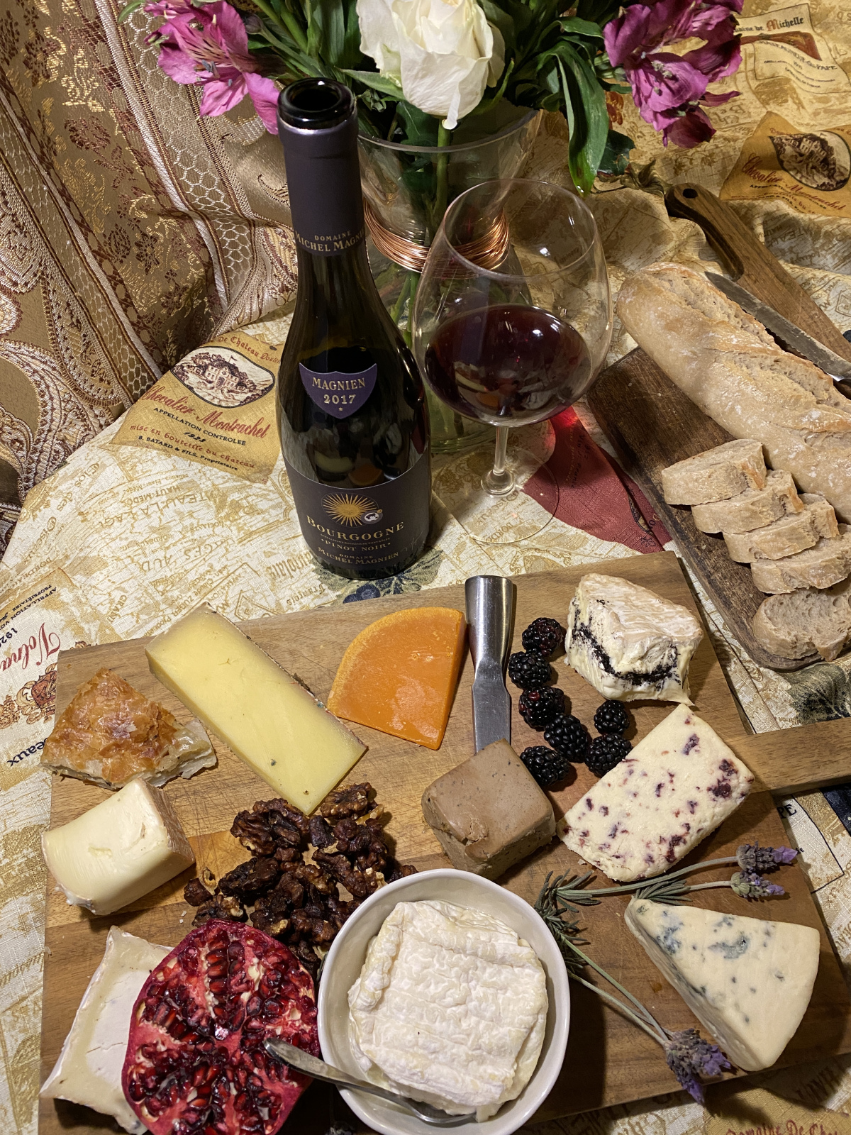 I specifically purchased cheeses to produce a plate of pinot pleasers to pair with a 2017 Michel Magnien Bourgogne Pinot Noir (SRP $30; sample):