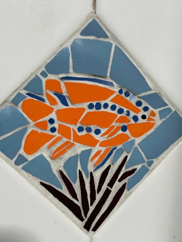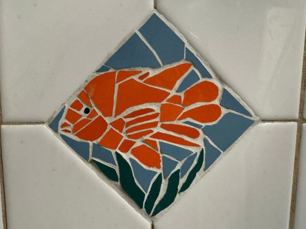My sister was a talented artist in many mediums, and she made these small 4 x 4 tiles of garibaldi juvenile and adult. These are early tile mosaics she did for me about 15 years ago. Our grandfather Manny Paquette was one of the very first deep sea divers and an expert on fish. He loved garibaldis which are our state fish. I’m grateful to have them. When I leave this house they will go with me.