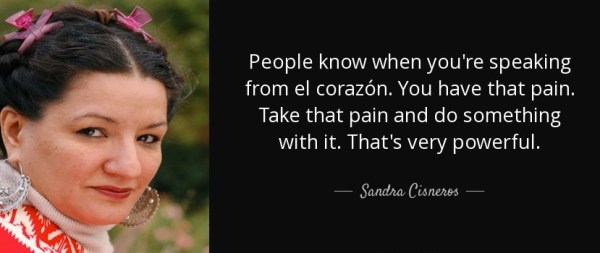 “People know when you’re speaking from el Corazon,” Sandra Cisneros writes. “You have that pain. Take that pain and do something with it. That’s very powerful.”