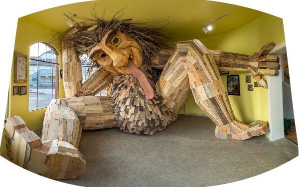 My day will get going at the Garagiste Festival in Solvang –with a stop to check out the new indoor troll that’s taken up life there! Danish artist Thomas Dambo with a small build crew and volunteers installed the very first California “Troll” in the Tower Gallery at the California Nature Art Museum.