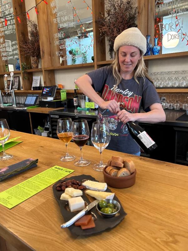 So that’s a bit about where the grapes come from and how they get made, but where can you sit down and enjoy a glass? While it is easier to find natural wines these days, one of the best places in Ventura County to buy a glass of natural wine is at Buddy’s Wine Bar in midtown Ventura. Owner Alexis Wade worked as a pastry chef, and then in the film industry in LA.