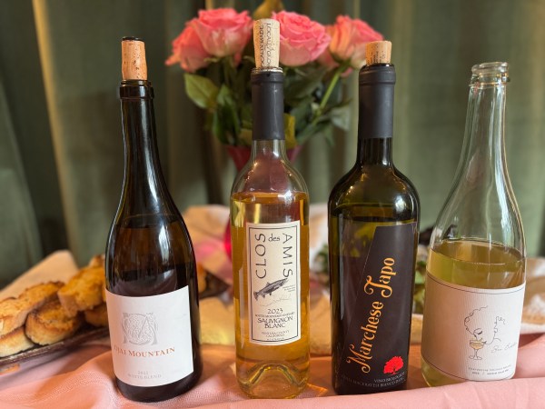 Made from certified organic Muscat by siblings Matthias, Leonhard and Viktoria Schödl, the wine is a cloudy golden ruby grapefruit color that’s very aromatic with a perfume of citrus, orchard fruit, and pollen that’s tart and dry on the palate with Meyer lemon, stone fruit and a clay texture. This wine was part of a three bottle tasting flight featuring Schödl.