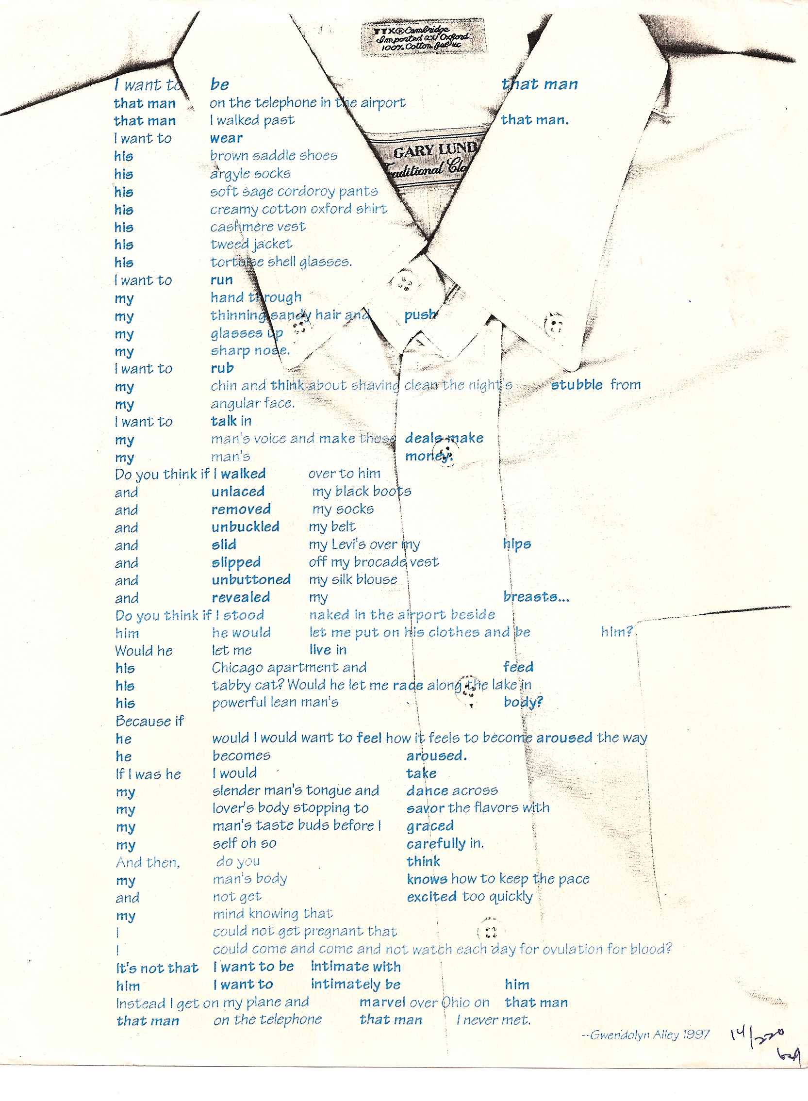 For the full post of this 315 Experiment poem (which was published in 2003 in ARTLIFE), please go here. Scroll to the bottom.